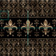 Tecido Ornamento de luxo preto e ouro Fleur-de-lis