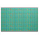 Este tecido tem um design atômico moderno do século médio de diamantes, e estereótipos em um campo de turquesa.