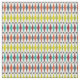 Este tecido tem um design moderno do século médio de diamantes esticados e estereótipos em um campo de branco.