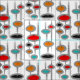 A idade espacial moderna do século médio se sobrepõe ao tecido sobre um fundo castanho-claro.