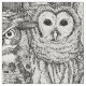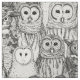 Originalmente desenhado a tinta, padrão ilustrativo de coruja. Inclui coruja-do-mar, coruja-de-barro e coruja-Excelente. Ilustração, corujas, pássaros, coruja excelente, coruja barrada, coruja-celeiro, ornitologia, natureza, noturna, Carolina do Norte, repetição de meio tijolo, marfim, preto