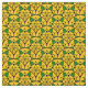 Tecido africano vibrante, com um padrão ouro amarelo, verde e vermelho, com círculos e folhas