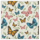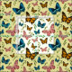 Padrão de borboleta bonito e colorido. As borboletas coloridas estão em amarelo-rosa e azul. Há também uma folhagem verde.