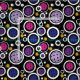 Tecido com almôndegas coloridas e círculos brancos sobre fundo preto. Perfeito como presente para um jogador de picleball em moda.