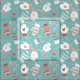 Um padrão aconchegante de luvas desenhadas à mão com designs ímpares rabiscados em cada luva. Coloridos numa paleta de cores moderna de Natal de cores azul-menta e pastel.