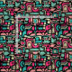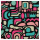 Um desenho abstrato original composto por muitas abstrato variadas formas numa paleta de cinco cores harmoniosas com fundo preto. Este design de padrão usa um azulejo de imagem gráfica vetorial permitindo que o padrão seja maior ou menor.