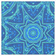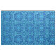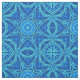 Tecido em um padrão mandala de efeito de aquarela geométrico em tons de azul denim claro a escuro
