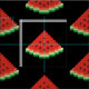 Ícone de arte em pixéis com fatia de melancia. Um padrão perfeito. Cor de fundo personalizada.