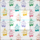 tecido em branco com um padrão de calçados pontiagudos em verde, rosa, amarelo, azul, roxo e laranja.