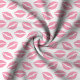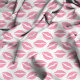 Esta tecido apresenta um charmoso padrão de beijos de lábios rosas em um fundo branco, perfeito para adicionar um toque divertido e romântico aos seus projetos de costura. Se você está criando artesanatos para o Dia dos Namorados, roupas da moda ou decoração exclusiva para o lar, este tecido traz um clima doce e elegante para qualquer criação. A estampa versátil é ideal para várias aplicações, incluindo roupas, acessórios e presentes DIY.