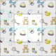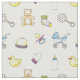 Padrão bonito com itens para bebês: ursinho, pato de borracha, pacificador, frasco de bebê, carrinho...
