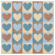 Este é um design de tecido bonito para cortinas, uso doméstico ou vestuário. Apresenta um padrão de corações amarelo pálido, azul claro, marrom-canela e azul escuro em quadrados de cores contrastantes. Perfeito para uma chic country ou homespun, aparência confortável.