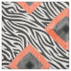 O Tecido de Padrão de Diamante Branco Negro Laranja tem formas de diamante e design branco preto. copyright Denise Bennerson, designer