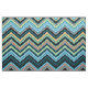 Um padrão quevron multicolorido com faixas de ziguezague de tamanho irregular, predominantemente azul.