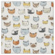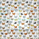 Uma coleção de rabiscos engraçados na face do gato, com pelo colorido em tons e marcas únicos e dispostos em um padrão reproduzível. Estas caras de gatos eram originalmente desenhadas à mão com caneta e lápis e depois transferidas para um formato vetorial para impressões de grande escala!