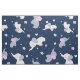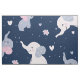 Elefantes bonitos, cor-de-rosa e cinza, ao estilo de desenho animado, em um padrão perfeito em um fundo azul-marinho personalizado.