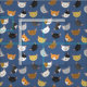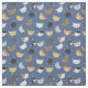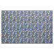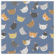 Este tecido divertido apresenta um padrão de diferentes rostos de gato sorridente sobre um fundo azul.