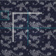 Pequeno padrão de flores brancas japonesas sobre fundo marinho-azul.