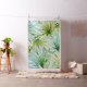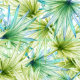 Tecido da selva de aquarelas com acentos de verde e azul.