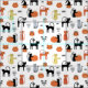Um padrão bonito e assustador de gatinhos do Halloween com gatos, fantasmas, gatos zombie, abóboras, crânios, aranhas e bruxas. Altere a cor de fundo para personalizar. Arte original de Nic Squirrell.