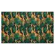 Tecido em um padrão caprichoso de girafas bonitinhas, beges e castanhas, cercadas por plantas da selva tropical, verdes, folhosas, sobre fundo preto