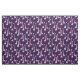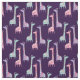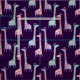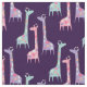 Um trio de lindas imagens de girafa pintadas fazem um padrão neste adorável tecido que é excelente para um bebê berçário ou criança. As girafas são verdes, cor-de-rosa e lavanda, e todas com manchas coloridas. As imagens são colocadas sobre um fundo roxo.
