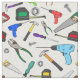 Este tecido — com suas ilustrações de ferramentas manuais e hardware — é excelente para roupas para futuros empregados e profissionais de mão de obra, empreiteiros e trabalhadores da construção.