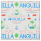 Um padrão perfeito de texto vermelho e azul Shoal Bay, Anguilla. Palmeiras verdes, peixes, caranguejos, veleiros, hélices, âncoras ao redor do texto. Caribe de Verão do Paraíso viagem, turismo, praia, recreação. Você pode usar este tecido têxtil incrível e positivo para qualquer projeto de artesanato ou roupa, e muito mais. Seja criativo, faça algo elegante e seja feliz!