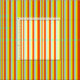 Este design apresenta um padrão listrado amarelo, vermelho e turquesa.