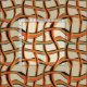 Abstrato de malha em linhas onduladas interligadas em ouro, laranja e preto