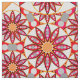 Padrão de mandala de doze pontos em tons de vermelho coral, pêssego, cinza e branco, traçado em preto e acentuado com ouro