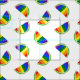 Este design neon colorido apresenta várias bandeiras do arco-íris em um padrão divertido.