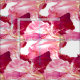 Bandeja delicada a aquarela da íris e guache pintura botânica vermelha escura, indo para tonalidades cor-de-rosa com uma dica de tecido amarelo padronizado. Pintura de arte original e design por Sarah Trett.