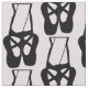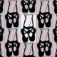 Tecido com uma ilustração negra de um sapatilhão de dançarinas balés e suas pernas. Ballerina está de pé nos dedos dos pés, em ponto. Rosa claro.