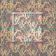 Tecido de cinza clara impresso com um padrão contemporâneo de recifes de coral submarino em corais e cor-de-rosa.