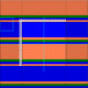 Este design apresenta um padrão de listras de coral, azul e verde.