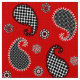 Tecido Padrão de salada, vermelho profundo, preto e branc