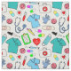 Um padrão bonito de suprimentos médicos que qualquer médico, enfermeiro, estudante de medicina ou profissional de saúde certamente vai gostar! Este padrão divertido inclui esfregões médicos, um estetoscópio, medicação, luvas de exame, saco médico e outros suprimentos. São desenhados à mão num estilo de desenho animado com cores brilhantes. A cor branca do fundo pode ser alterada para outra seleção de sua escolha. Parece melhor em cores pastéis. Este tecido super fofo é perfeito para costurar ou criar sua própria criação especial para você mesmo ou como presente para qualquer profissional de saúde!