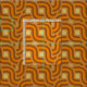 O padrão marrom-vivo e amarelo inspirado nos anos 70 com esquema de cores de anos setenta. Um tecido com padrão de tecelagem/wicker.
