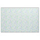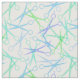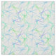 tecido de cabelo branco estilista com um padrão de tesoura disperso em diferentes tons de azul e verde.