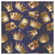 Várias coroas douradas com gemas sobre fundo embelezado azul e preto, padrão de repetição contínua