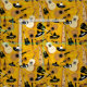 Diversão do padrão de banda Mariachi sobre fundo amarelo ouro. O padrão apresenta guitarras, violinos, harpas, trompetes e sombreros.