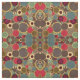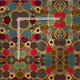 Tecido Padrão dos Círculos do Século Médio Vintage. Círculos azuis, verdes, cinzas, roxos e amarelos.