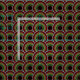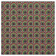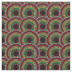Tecido de estilo africano com formato vermelho, dourado e círculos pontilhados verdes sobrepostos a preto