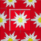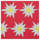 Um pedaço de tecido vermelho e branco com um padrão de edelweiss sem costura. Ideal para modelar travesseiros fazeres, máscaras de rosto, ou qualquer coisa que você queira.