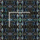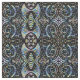 Um padrão preto espelhado de desenhos em camadas sobre um caleidoscópio floral colorido forma um design natural interessante neste tecido.