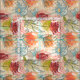 Um padrão botânico abstrato africano em tons de laranja, burgundy, azul e verde.