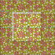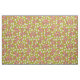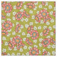 Este tecido nostálgico apresenta um padrão floral traçado à mão 70s em rosa, laranja e branco sobre um fundo verde.