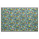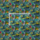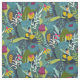 Um padrão floral tropical brilhante em tons de azul, verde, ouro e rosa.