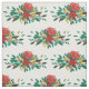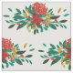 Tecido com um buquê floral bonito em cores vermelha, dourada e verde.